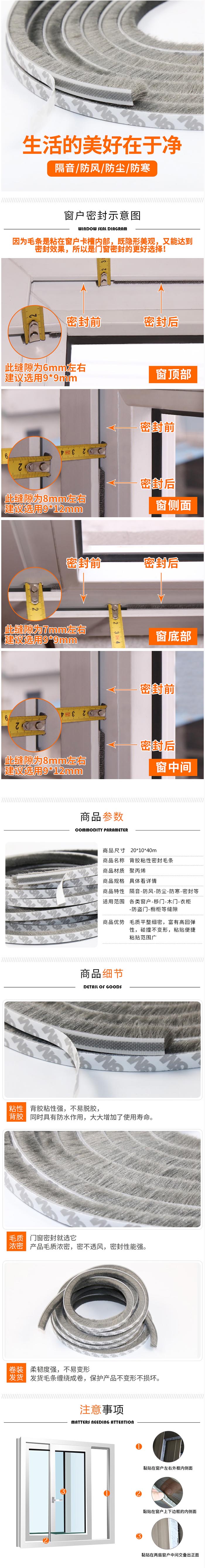 鋁合金門窗密封條塑鋼窗戶保溫隔音自粘型玻璃木門縫防風保暖毛條20*10*40M